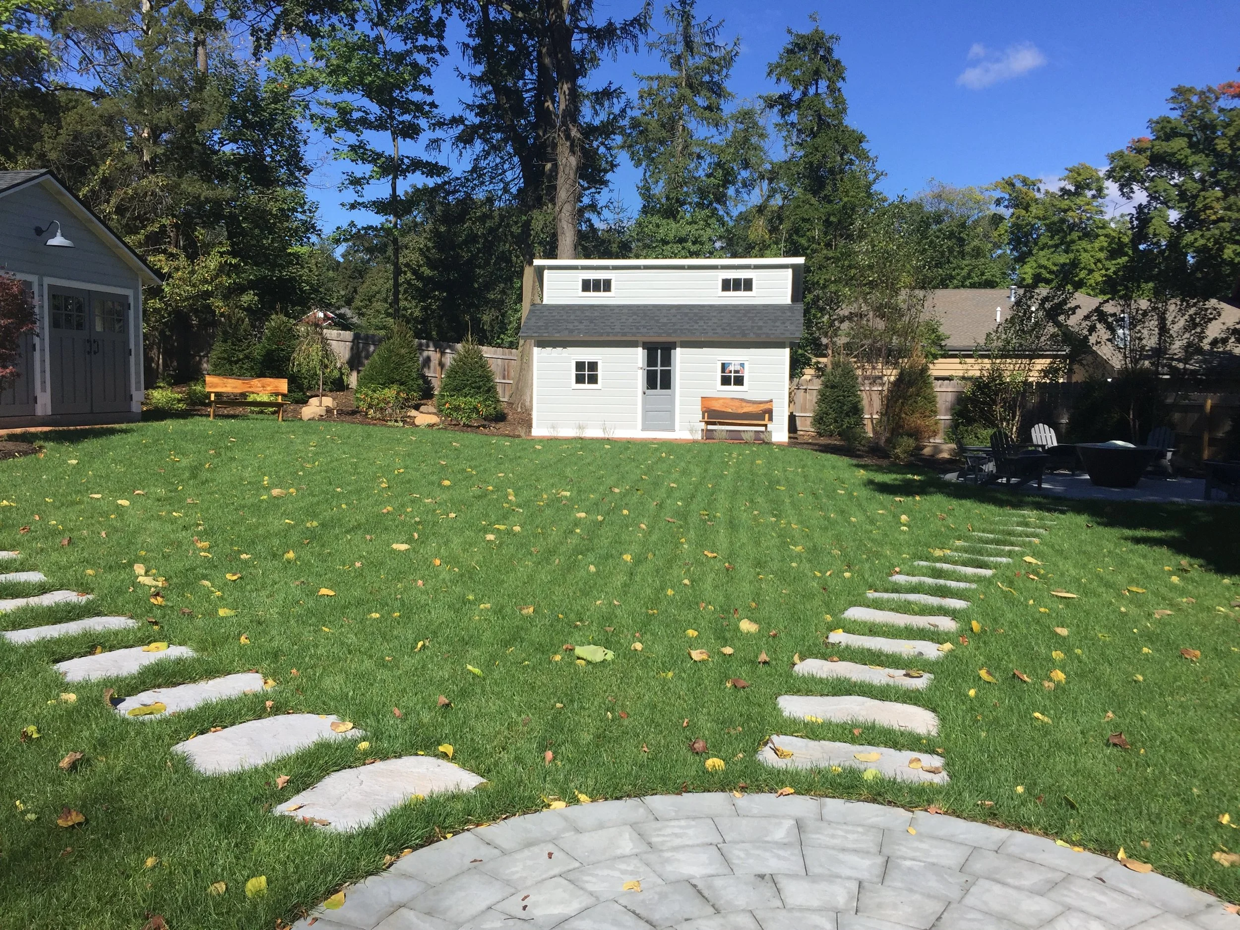 Replacement of deteriorated railroad tie retaining wall and rotting stairway, with natural stone retaining wall and bluestone stairway. Install appropriate drainage system.
